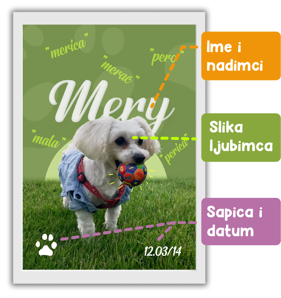 Personalizirani poster sa slikom, imenom, opisom i šapicom Vašeg najdražeg ljubimca.